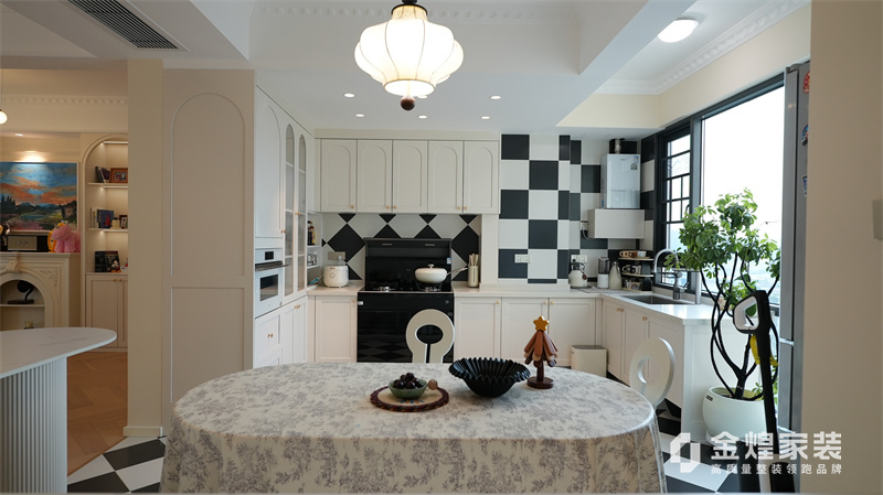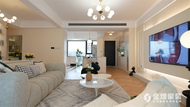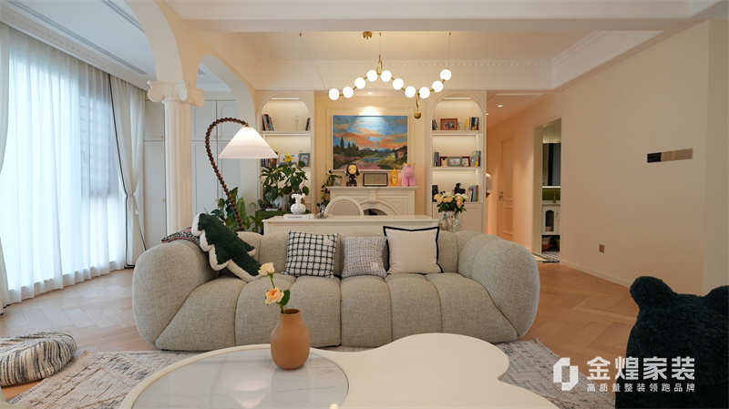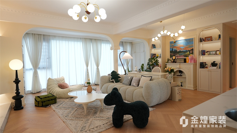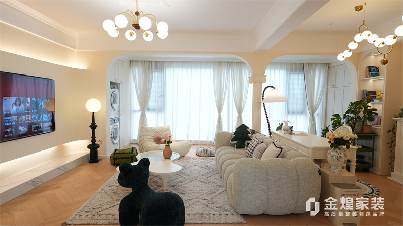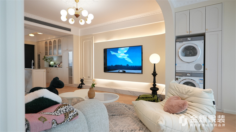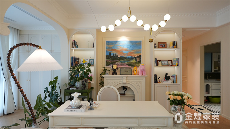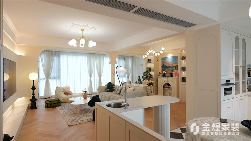 該案例整體色調(diào)柔和淡雅,家具造型簡(jiǎn)約,線條流暢,同時(shí)融入了一些法式元素,如精致的吊燈、優(yōu)雅的拱形門洞和浪漫的裝飾細(xì)節(jié),既保留了法式風(fēng)格的浪漫與優(yōu)雅,又兼具現(xiàn)代簡(jiǎn)約的簡(jiǎn)潔與實(shí)用。