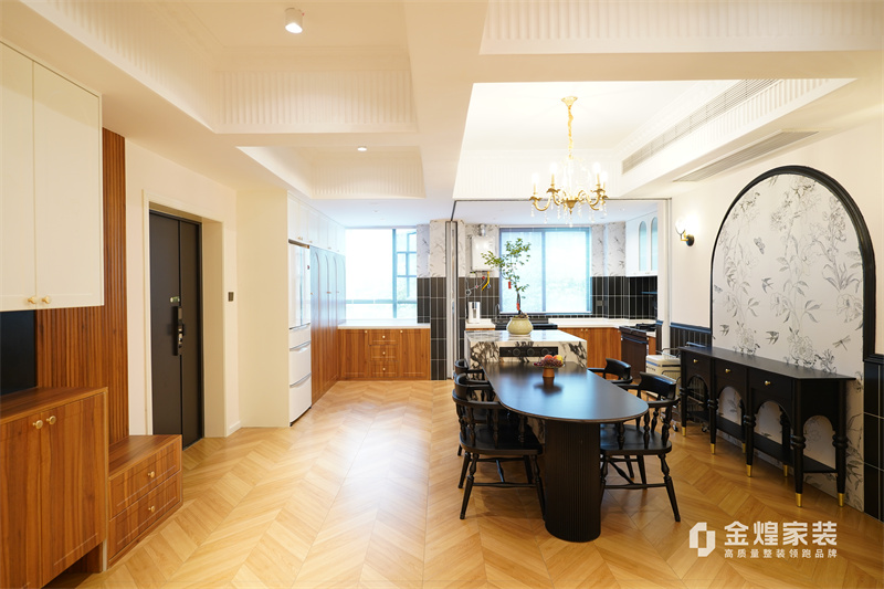 從客廳的裝飾細(xì)節(jié)可以看出,如帶有精致雕花的天花板、華麗的吊燈、優(yōu)雅的家具線條以及整體柔和的色調(diào),都透露出法式風(fēng)格的浪漫與典雅。