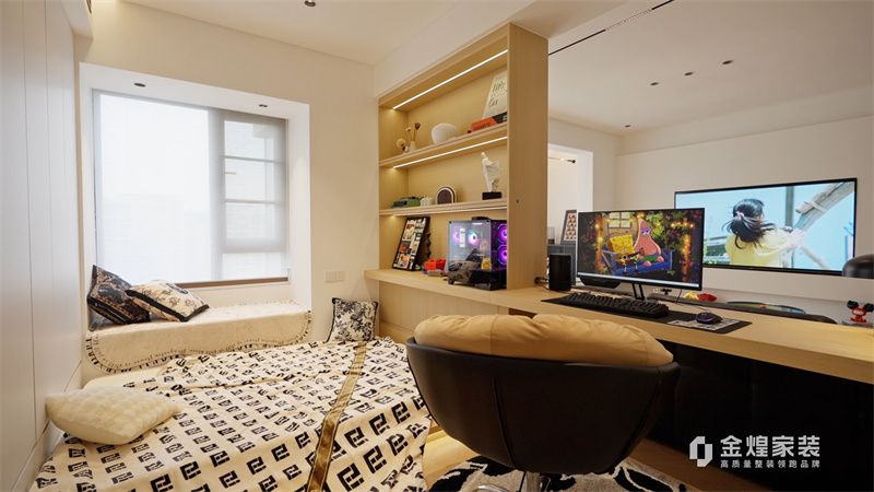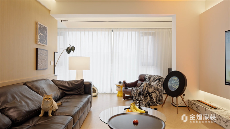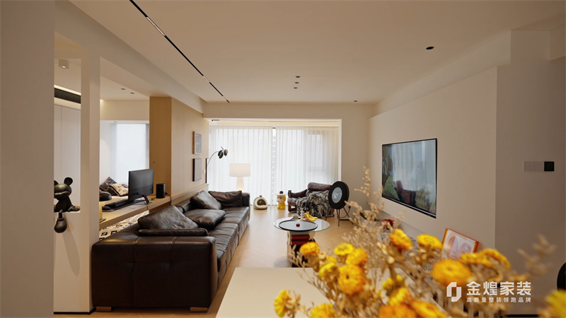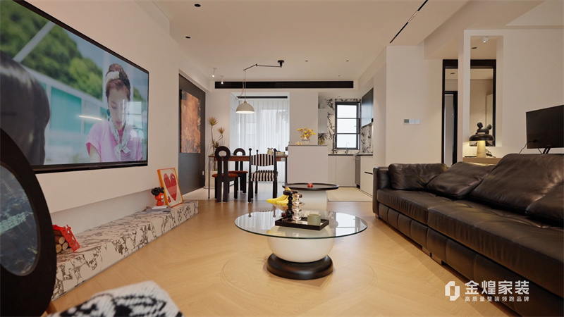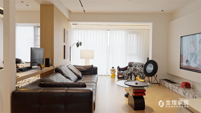 這套案例是現(xiàn)代中古混搭風格。整體色調(diào)以淺色為主,搭配深色家具,營造出簡潔而不失溫馨的氛圍。客廳的布局開闊,沙發(fā)、茶幾和電視的擺放合理,既美觀又實用。