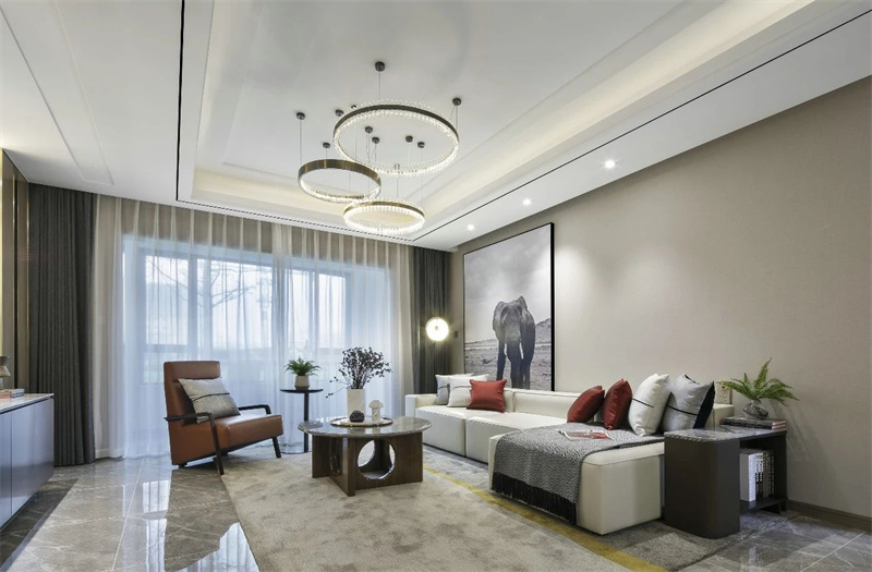 同時,客廳中巧妙融入了現(xiàn)代元素。簡約現(xiàn)代的燈飾和軟裝配飾,讓整個空間更加舒適和實用,也使整個客廳散發(fā)著溫暖宜人的氛圍。