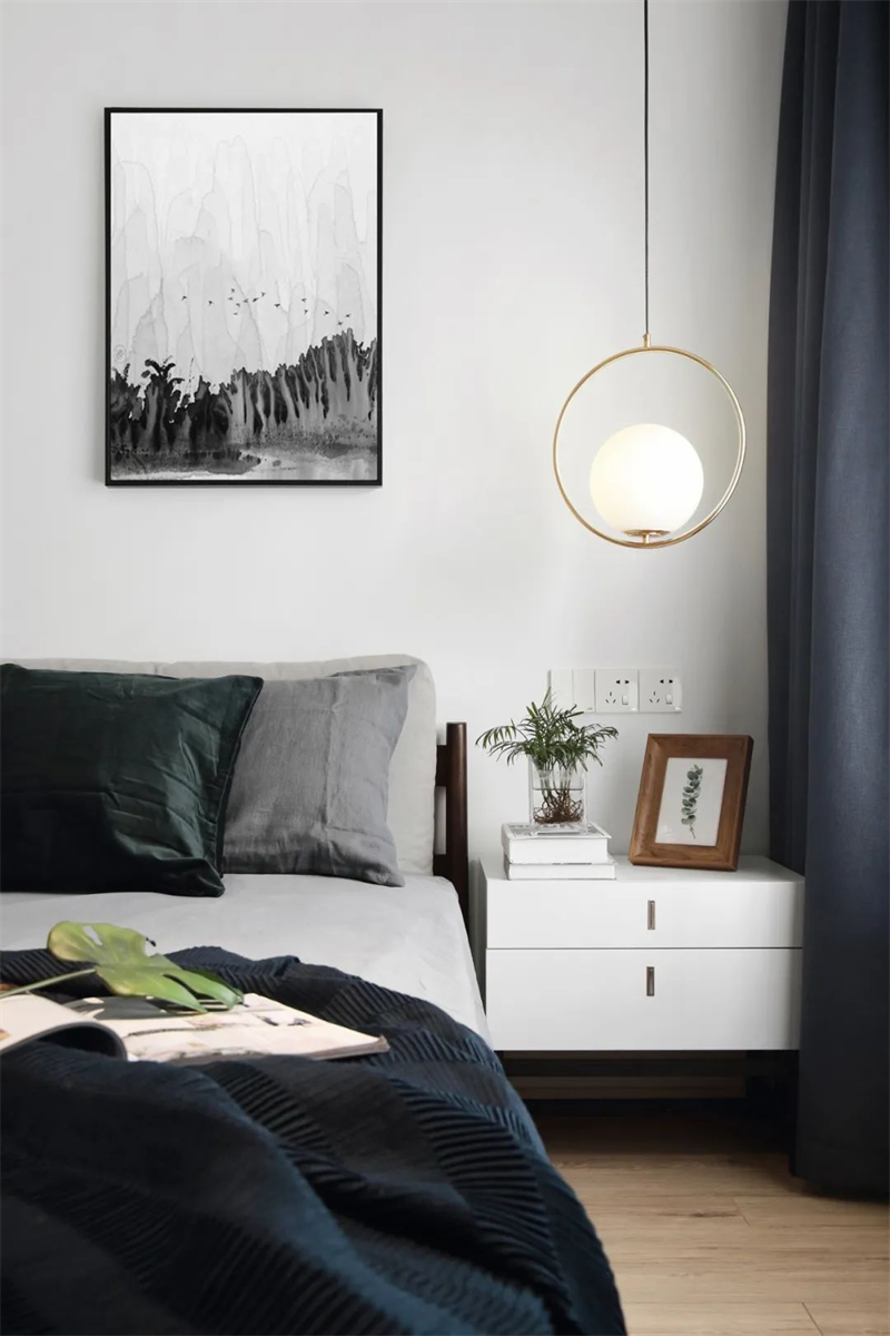 臥室的墻面選擇明亮的白色增加空間感和提升明亮度。地面采用原木色木質(zhì)地板,為空間增添溫暖和自然感。床頭柜和衣柜采用簡約的設(shè)計,整個臥室營造出一種寧靜和清新的氛圍,強(qiáng)調(diào)整潔和有序,為居住者提供舒適和寧靜的休息空間。